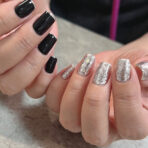 2025/09/24☆ ブラックとシルバーで☺︎ 先端のシルバーライン おしゃれです♡ – – #アシメネイル #三軒茶屋 #三軒茶屋ネイルサロン #三軒茶屋ネイル #三茶ネイルサロン #三茶ネイル # …