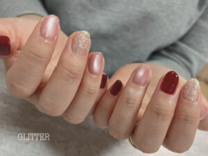 ☆マグネットネイル☆ 2025/12/12 Staff Blog ☆ ピンクマグとボルドーの組み合わせ♪ かわいいです♡ – – #マグネットネイル #三軒茶屋 #三軒茶屋ネイルサロン #三軒茶屋ネイル #三茶ネイルサロン #三茶ネイル #定額ネイル